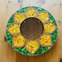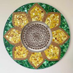 Perlmutt: grün Hintergrund & gelb das Blüteninnere