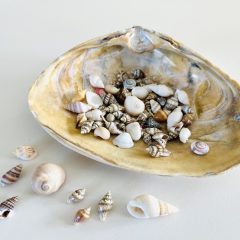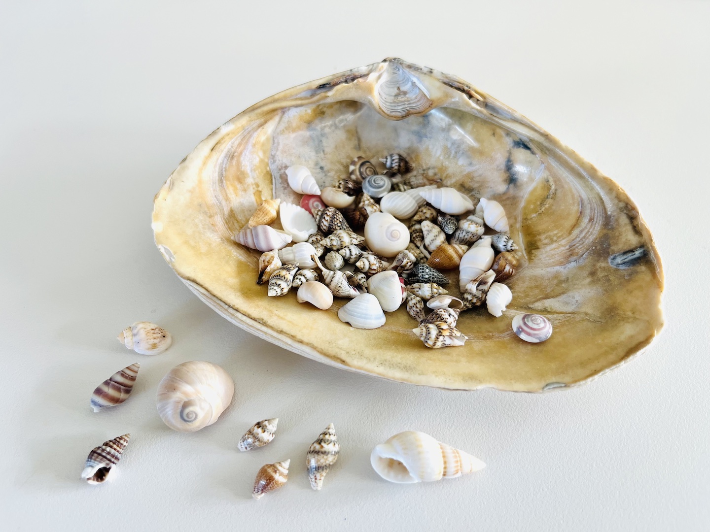 Gefüllt mit einem von mir entworfenen Holzzuschnitt aus der Wunderwerkstatt, veredelt mit Olivenöl. Gefüllt mit einzigartigen farbigen Perlmutt, Edelsteinen, Glasstrass und Federn.
