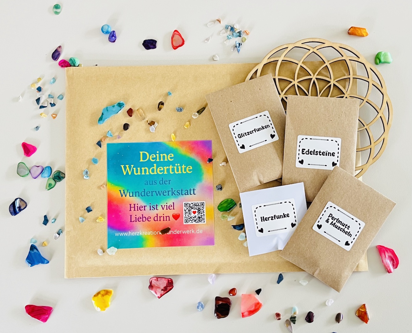 Die Wundertüte Herzfunke ist eine liebevolle Einladung, kreativ zu werden und dich spielerisch mit deiner Herzensenergie zu verbinden.
