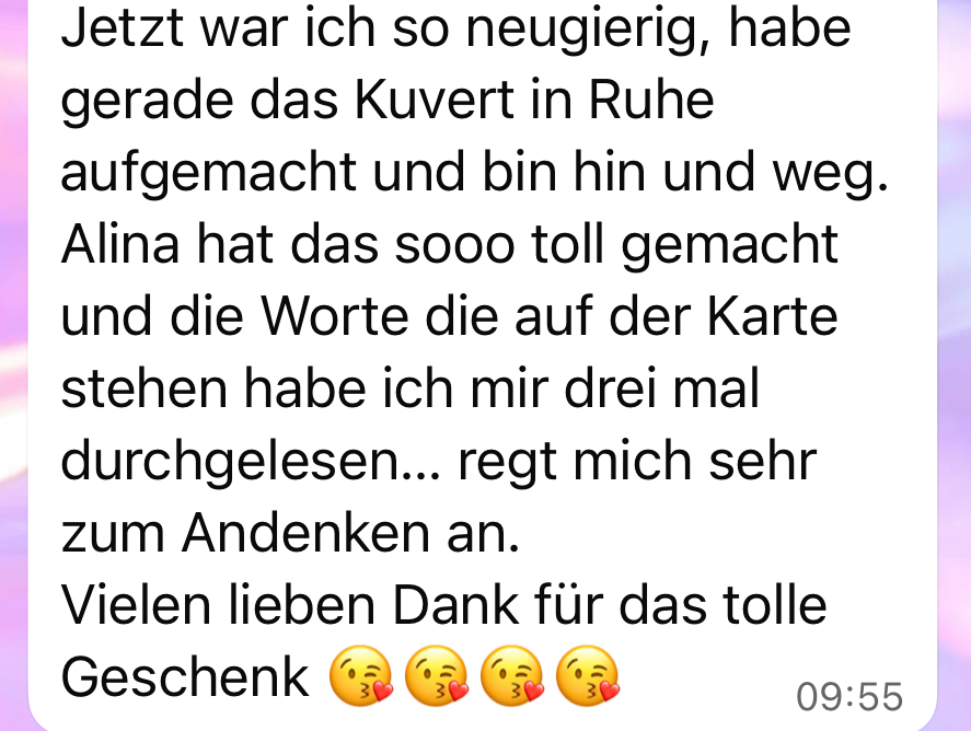 Ich verändere oder manipuliere nichts, sondern öffne einfach Raum, damit die Botschaft entstehen darf, die für dich bestimmt ist. 💫