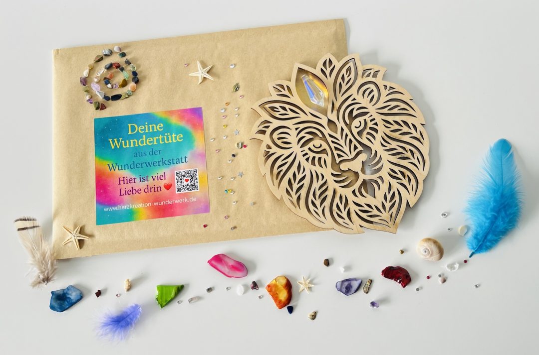 Enthalten sind sorgfältig ausgewählte Schätze aus der Wunderwerkstatt, mit denen du dein eigenes Krafttier-Wunderwerk gestalten kannst.