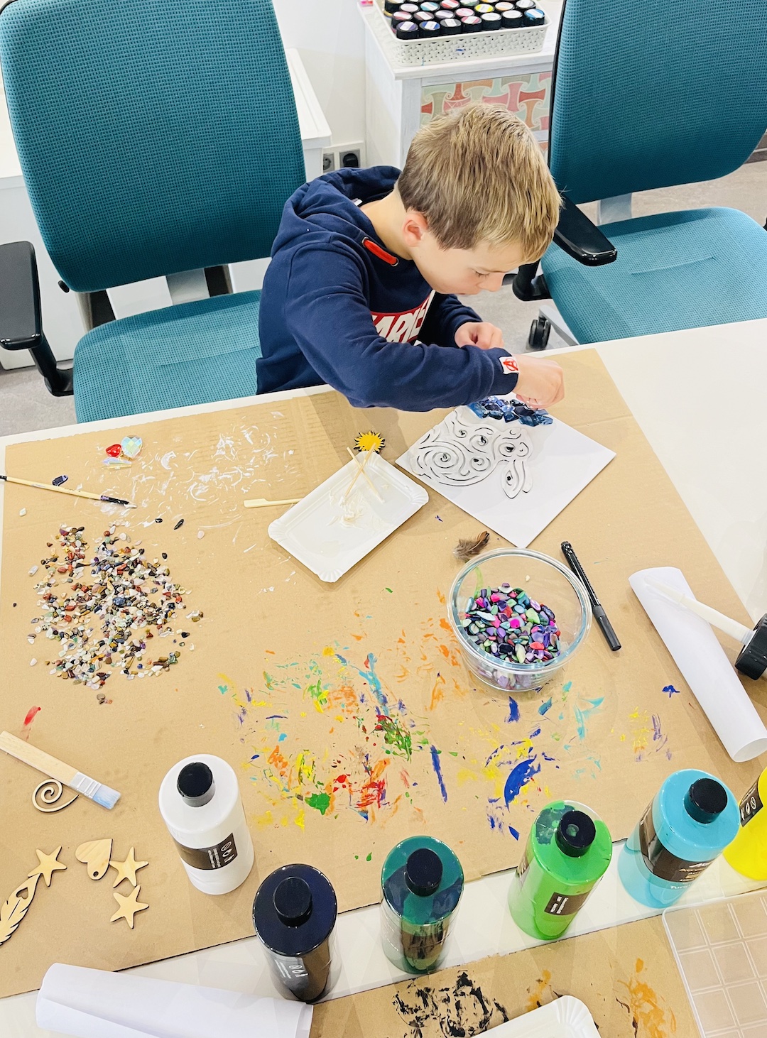 Perlmutt, Muscheln, Edelsteine, Federn, Holz und kleine glänzende Elemente – alles, was du brauchst, um dein Krafttier individuell zu gestalten.